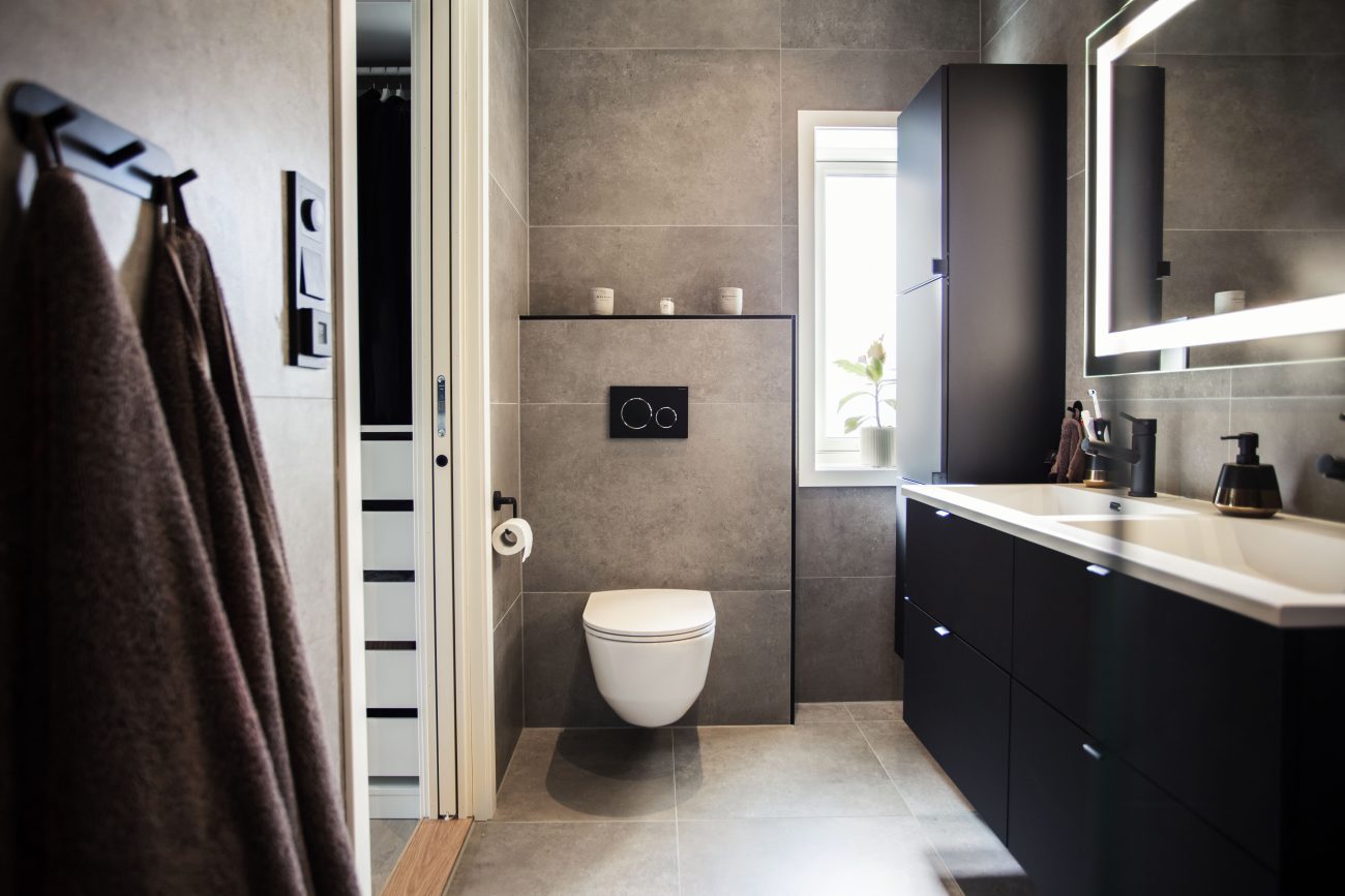 – Badene ble heist på plass, komplett med dorullen hengende på veggen og håndkleet klart, sier selger og prosjektleder David Enok Nilsen.