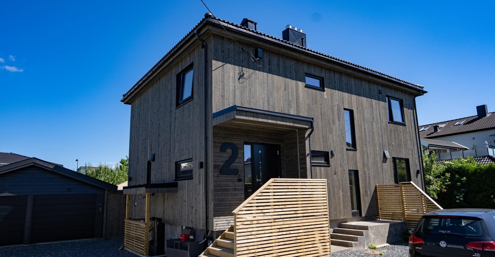 Vi merket fort at tomannsboligen, som vi bodde i tidligere, ble for liten for oss i fremtiden. Vi så derfor først på muligheten for å renovere en gammel enebolig, men det la vi fort fra oss.