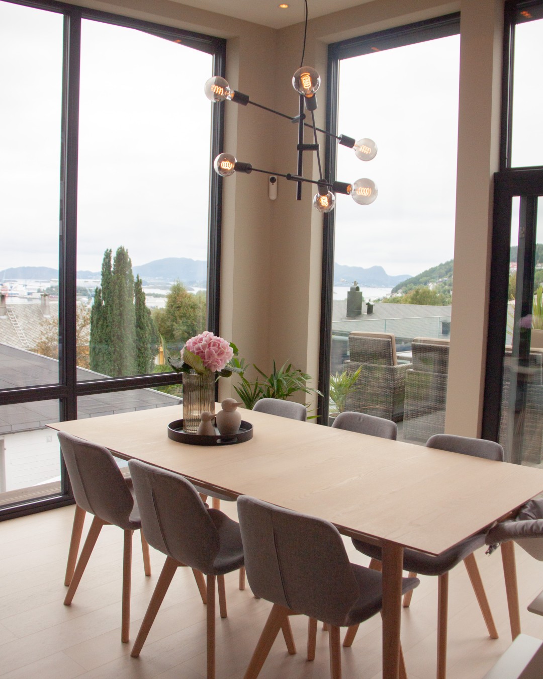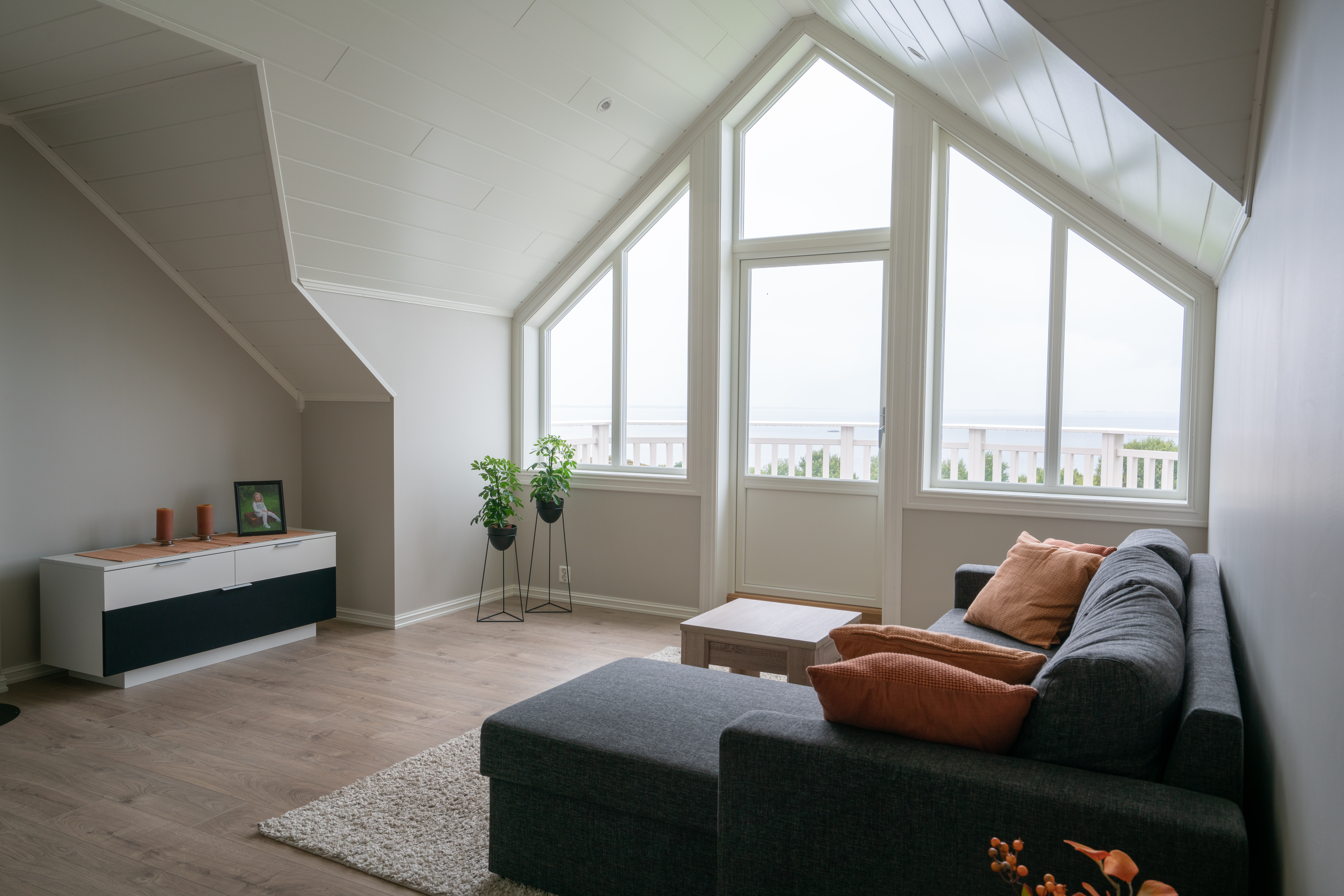 Huset har store vindauge som gir mykje godt lys og skaper ein romsleg følelse. Frå spisebordet kan familien sitje og nyte middagen til den herlege utsikten over havet og heimbyen. Med eit så stort og luftig hus kan familien no invitere både vener og familie på besøk, utan å måtte uroa seg for å ha for liten plass.