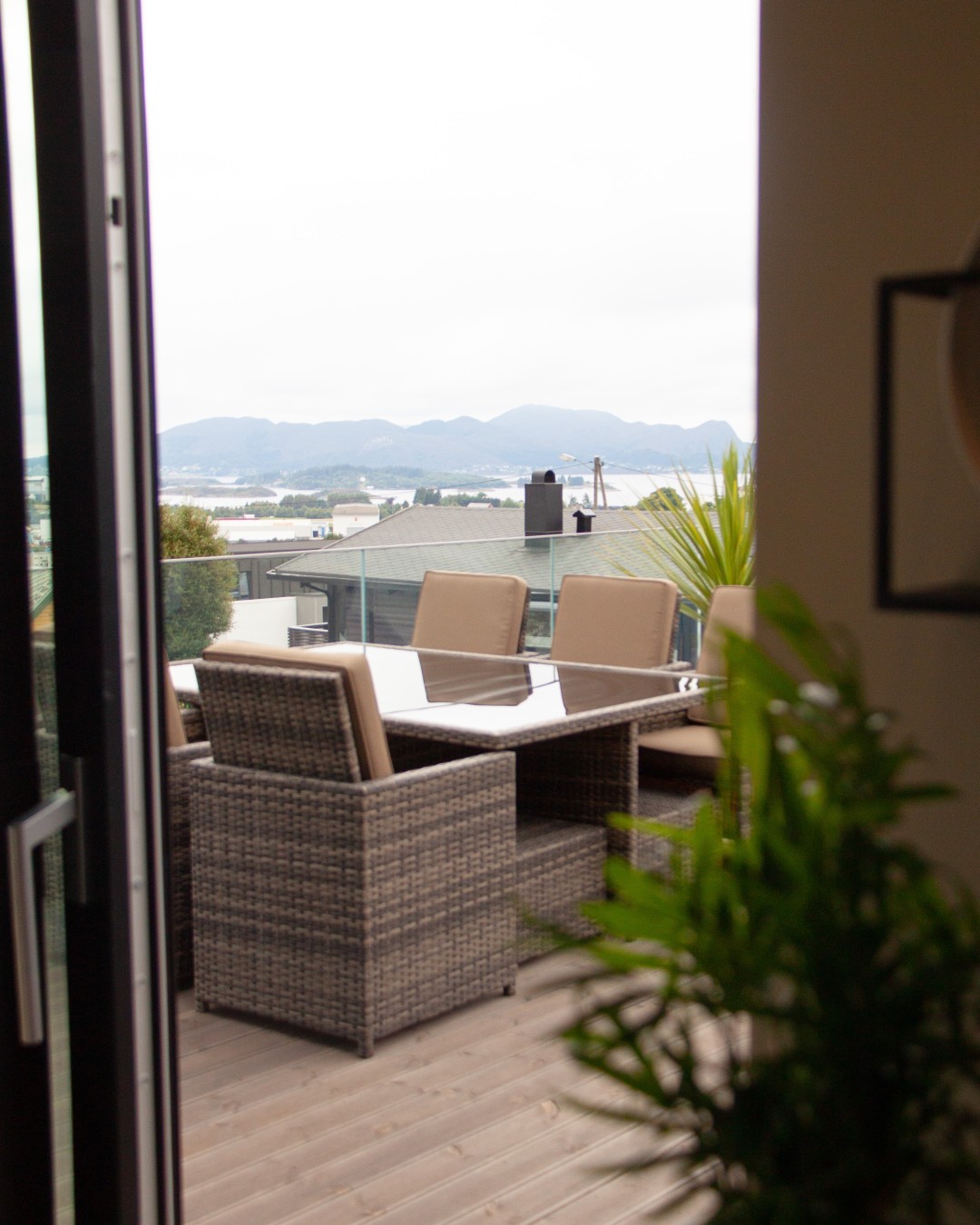 Fra takterassen har du utsikt over nydelige Lurefjorden.