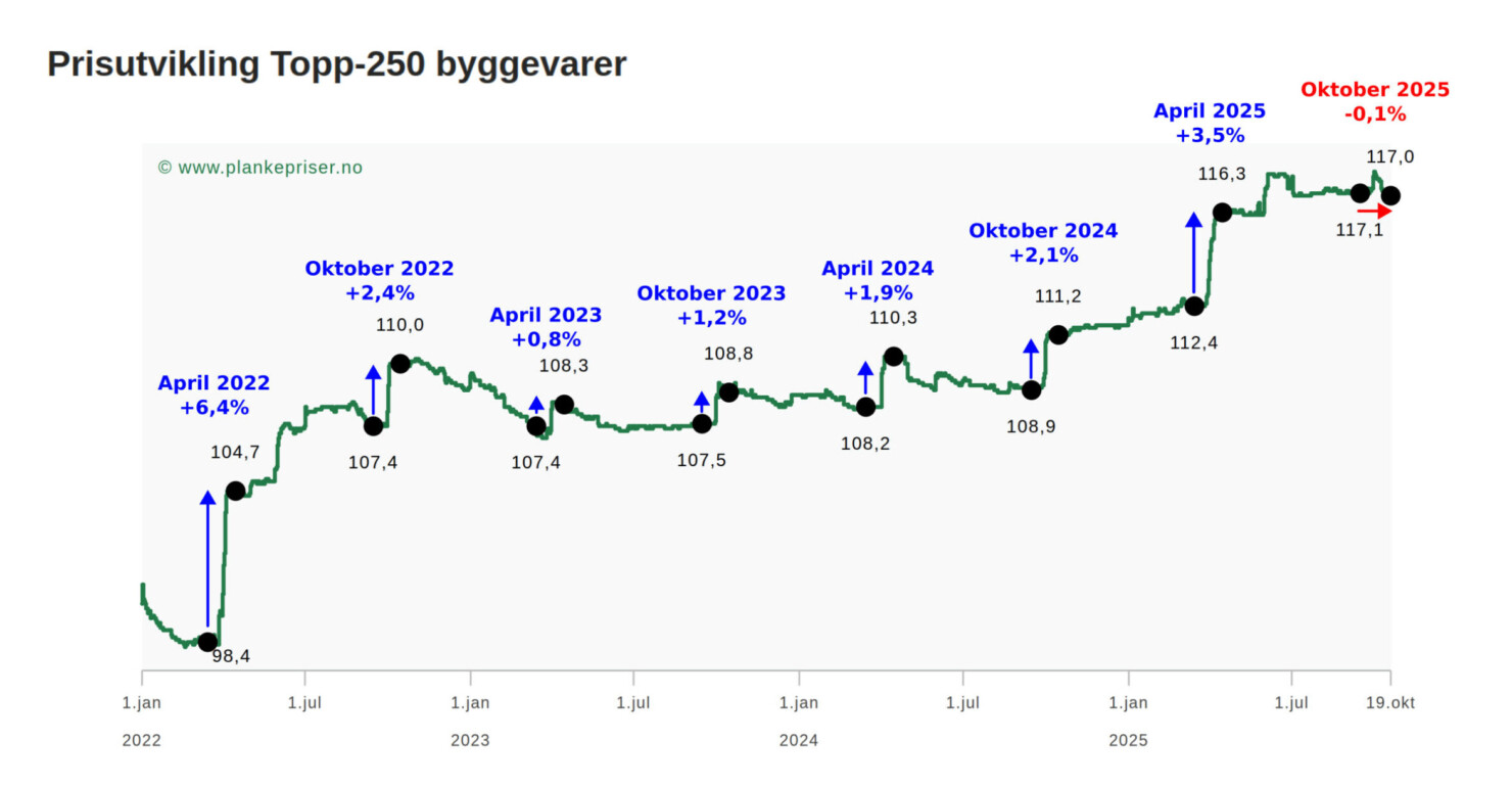( Illustrasjon Plankepriser.no: Det er første gang på fem år at prisene ikke stiger i oktober, en måned som har vært preget av justeringer oppover, skriver Olav Pekeberg i Plankepriser.no )