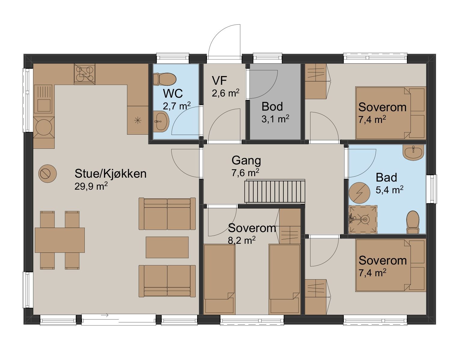Alt kan tilpasses for å imøtekomme dine ønsker og behov. Fordelen med å bygge nytt hus er at du kan tilpasse det etter egne ønsker. Vi hjelper deg hele veien fra idé til ferdig bolig med fagkunnskap og råd for å skape din perfekte bolig.