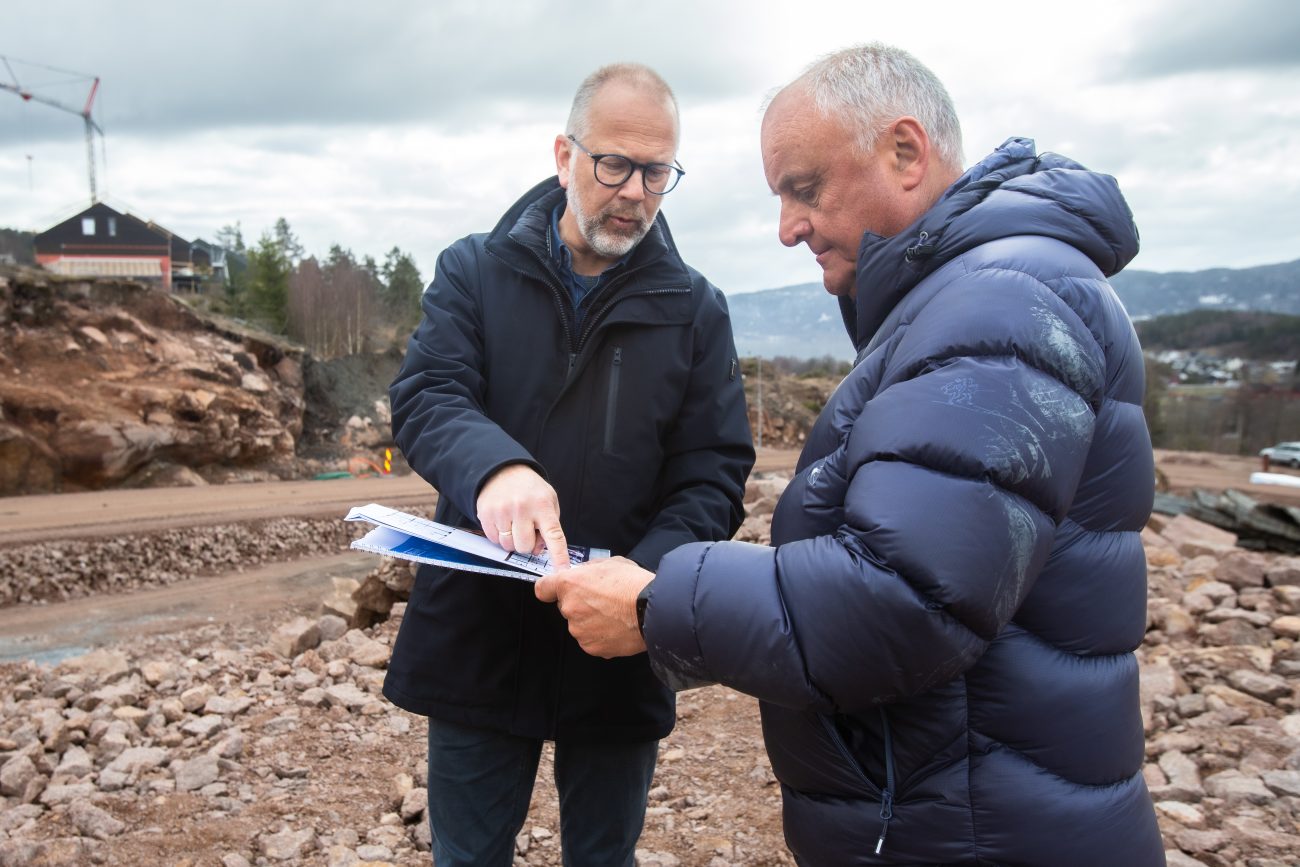 – Vi har fått igangsettingstillatelse på to tomannsboliger som vi har startet på nå. Prosjektet har en byggetid på rundt ni måneder, så mot slutten av året vil vi levere nøkkelferdige boliger ut til kundene våre på løpende bånd, innleder selger og prosjektleder i Byggmann Drammen, David Enok Nilsen.